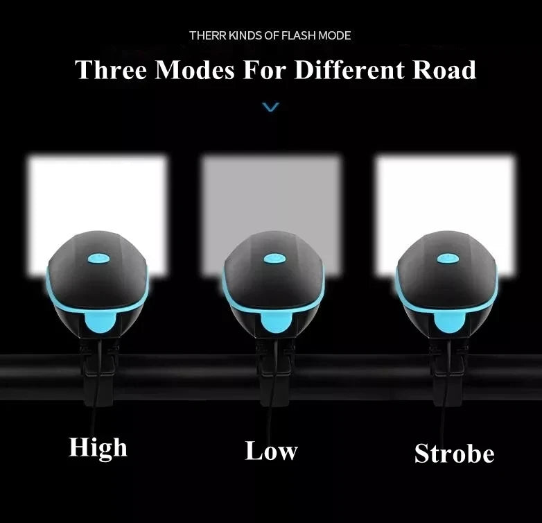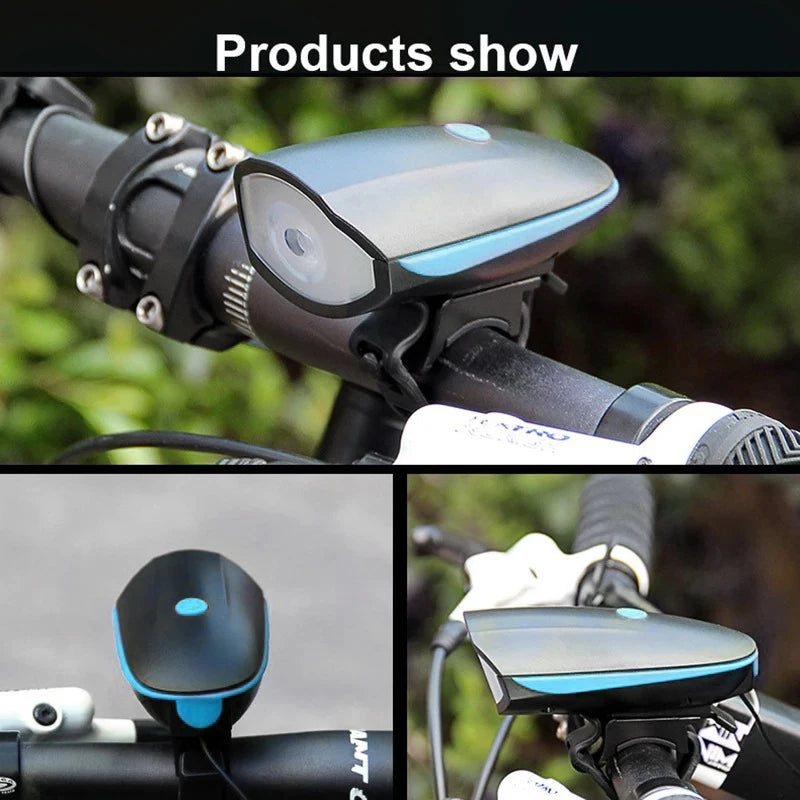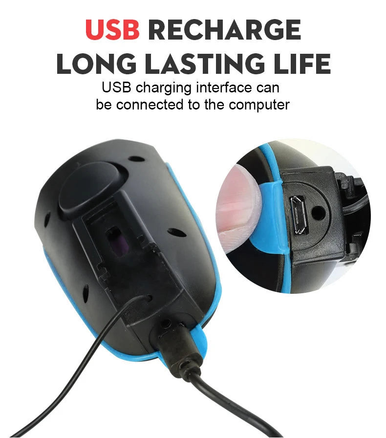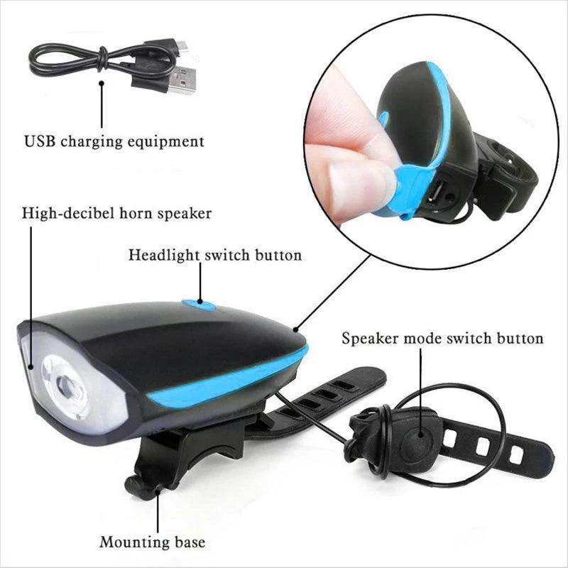 Sort cykellygte USB LED vandtæt med horn mountainbike mørk nat udendørs ridning forlygte